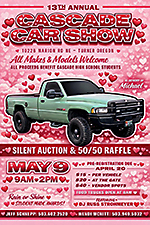 May 9 (Saturday) – Cascade High School Annual Car Show, Turner, OR, 9:00AM-2:00PM – All proceeds benefit the Senior All-Night Party at Cascade High School. The entire community turns out for support, and the awards are made by high school students. Registration $20 at the gate, or register in advance for $15 by April 20 at this link.